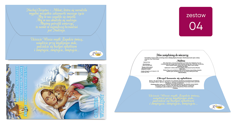 Opłatki pieczone zgodnie z wieloletnią tradycją kościoła katolickiego. Nowoczesne opakowania ułatwiają ich przechowywanie.