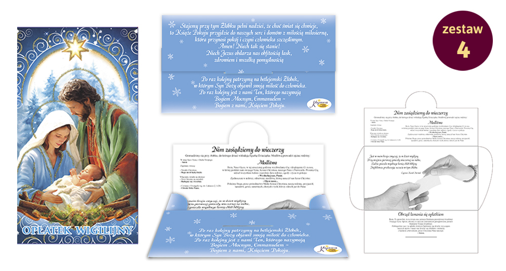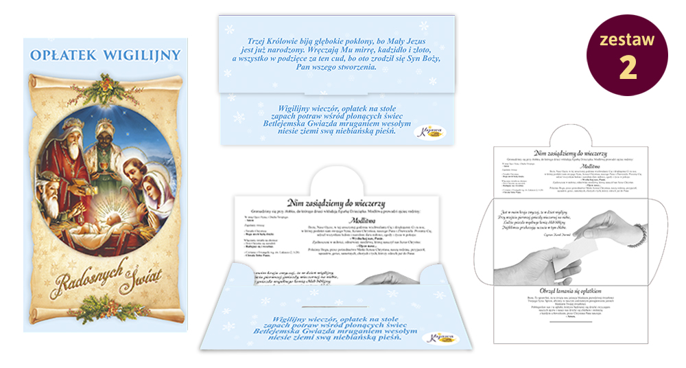 Opłatki pieczone zgodnie z wieloletnią tradycją kościoła katolickiego. Nowoczesne opakowania ułatwiają ich przechowywanie.
